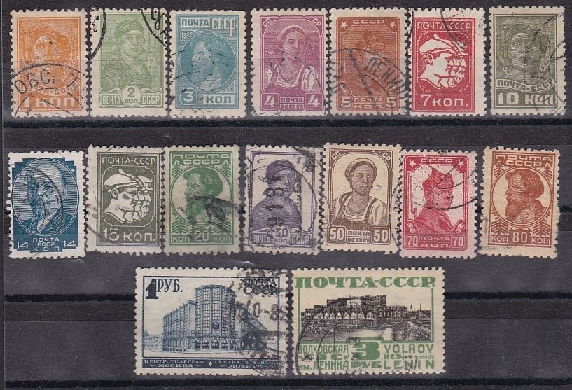 СССР, 1929 год. Стандартный выпуск, с водяным знаком. 16 гашеных марок.