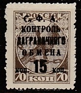 СССР 1932 год. Разрешительные марка контрольного сбора по заграничному филателистическому обмену, 1 марка (ном. 15 коп.) (наклейка)