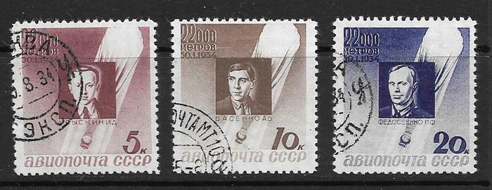 СССР 1934 г, Стратонавты, 3 гашёные марки