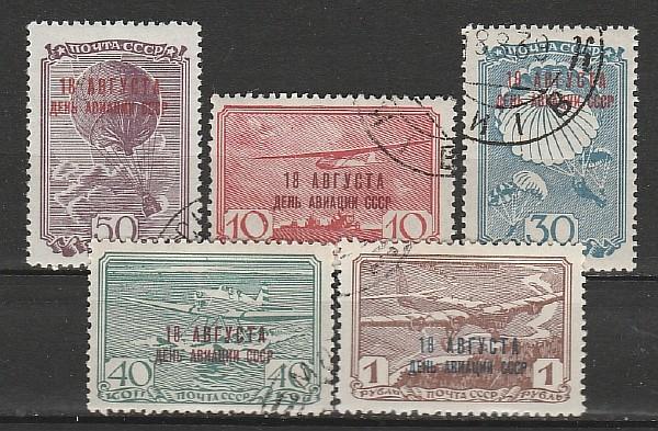 СССР 1939, День Авиации, 5 гаш. марок с клеем