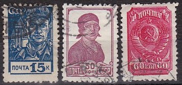 СССР, 1939 год. Стандартный выпуск, перф греб . 3 гашеных марки.