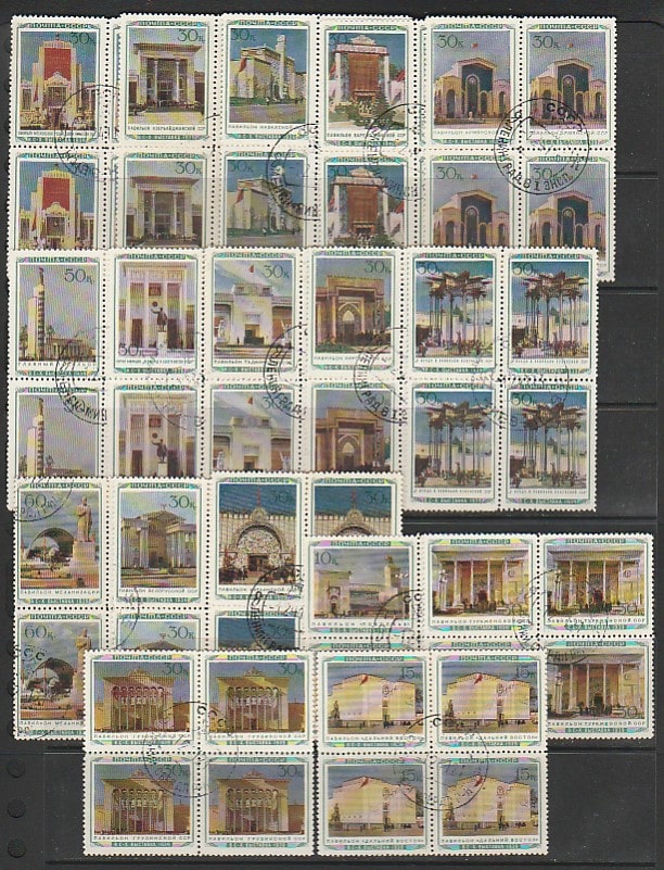 СССР 1940 год. Всесоюзная сельскохозяйственная выставка. Павильоны Республик, 17 квартблоков (гашёные)