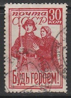 СССР 1941 год. Будь героем! 1 гашёная марка