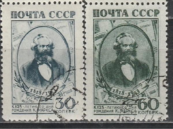 СССР 1943, К. Маркс, 2 гаш. марки