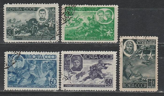 СССР 1944 год, Герои СССР, 5 гашёных марок. (III выпуск
