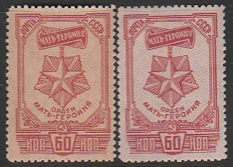 СССР 1945 год. Орден "Мать - героиня". Разновидность - разный цвет, 2 марки.