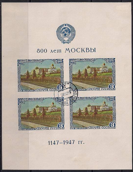 СССР 1947 год. 800 лет Москавы. Гашеный блок