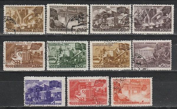СССР 1947 год, Восстановление Народного Хозяйства, 11 гашёных марок с/з