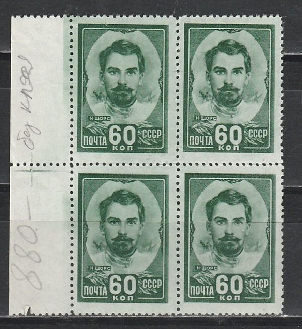 СССР 1948, Герой Гражданской, Щорс, квартблок без клея