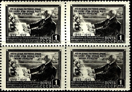 СССР 1949 год. 100 лет со дня рождения академика И. Павлова. Квартблок