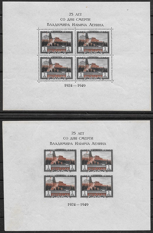 СССР 1949 год. 25 лет со дня смерти В.И. Ленина, 2 блока зубцовый и беззубцовый (на данный товар скидка не распространяется!)