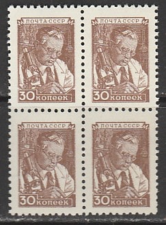 СССР 1949 год. Квартблок. Стандартный выпуск. Учёный. (30 коп.), № 1296