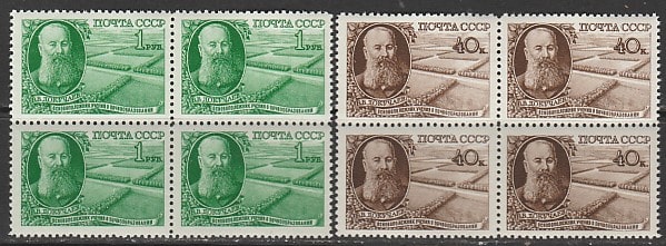СССР 1949 год. Портрет естествоиспытателя В.В. Докучаева, 2 квартблока