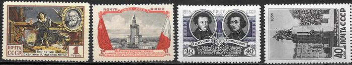 СССР 1955 год. 10 лет Договору о дружбе между СССР и Польской НР, 4 марки