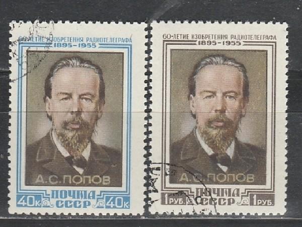 СССР 1955 год , А. Попов, 2 гашеные марки .