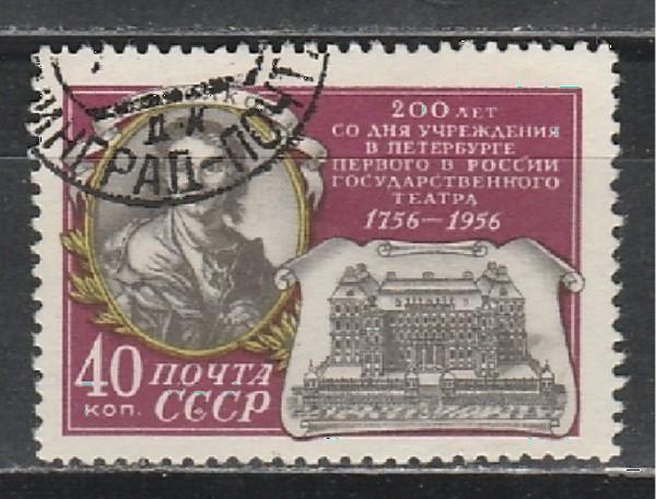 СССР 1956 г, 200 лет Первому Театру в СПб, 1 гашёная марка.