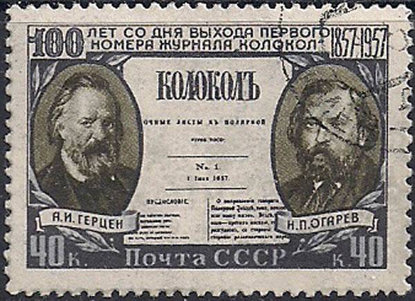 СССР 1957 год. 100 лет первой революционной русской газете "Колокол" (1926). 1 гашёная марка