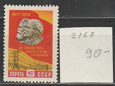 СССР 1958, 41 Годовщина Октября, К.Маркс и Ленин на Знамени, 1 марка