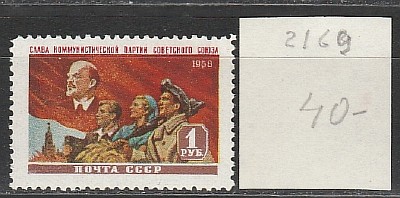 СССР 1958 год, 41-я Годовщина Октября, Рабочие, В. И. Ленин., 1 марка. Слава КПСС.