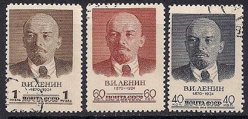 СССР 1958 год. 88 лет со дня рождения В.И. Ленина. 3 гашеные марки
