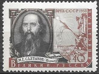 СССР 1958 год. Писатели нашей Родины, М.Е. Салтыков, 1 марка