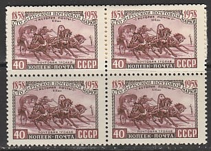 СССР 1958 год. Почтовая тройка XIX века, квартблок