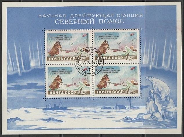СССР 1958 год. Советская научная дрейфующая станция "Северный полюс", блок (гашёный)