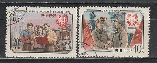 СССР 1959, КНР, 2 гаш. марки с клеем