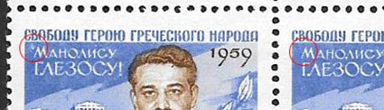 СССР 1959 год. Разновидность - пятно у имени. Свободу Манолису Глезосу!СССР 1959 год. Разновидность - пятно у имени. Свободу Манолису Глезосу!