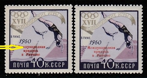 СССР 1960 год. Международная ярмарка в Риччоне. Разновидность - "д" над "р" в надпечатке, 2 марки.