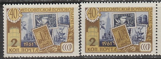 СССР 1961 год. 40 лет советской почтовой марке (ном. 2 к). Разновидность - разный оттенок
