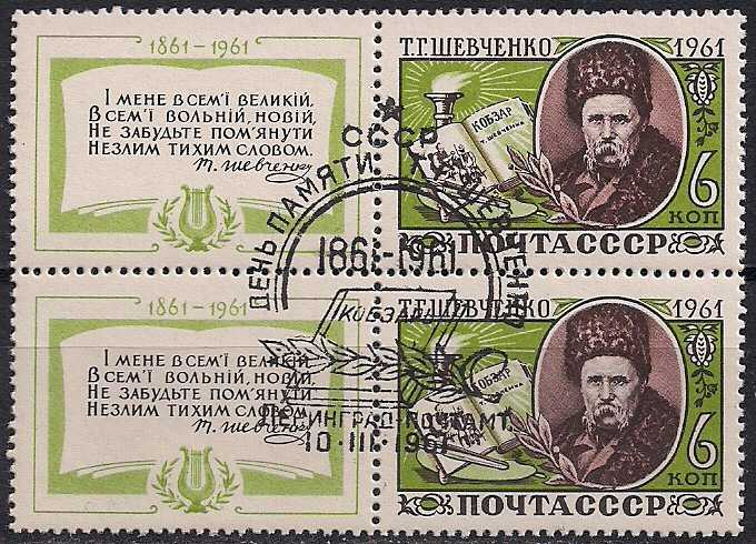 СССР 1961 год. День памяти Т.Г. Шевченко (2459). Квартблок со спецгашением