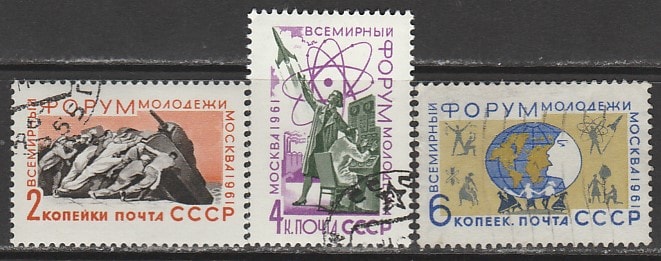 СССР 1961 год. Всемирный форум молодёжи в Москве, 3 гашёные марки