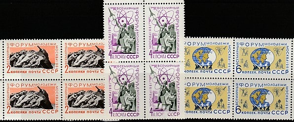 СССР 1961 год. Всемирный форум молодёжи в Москве, 3 квартблока (2507-09) (К КОСМОС