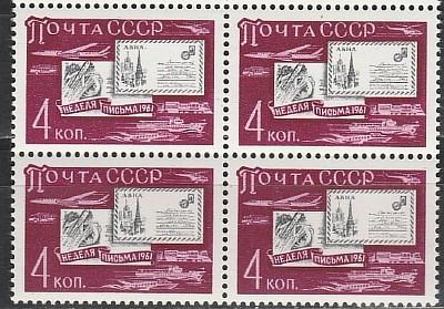 СССР 1961 г, Неделя Письма, квартблок КОСМОС