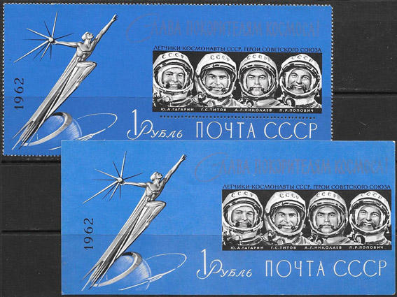 СССР 1962 год. Слава покорителям космоса! 2 блока. наклейки