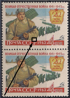 СССР 1963 год. 20 лет битве на Волге (ном. 4к). Разновидность - красная точка у локтя справа