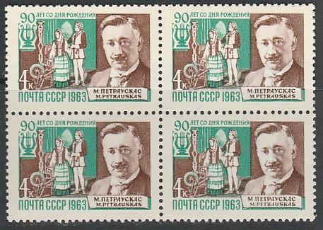 СССР 1963 год. 90 лет со дня рождения литовского композитора и дирижёра Микаса Петраускаса, квартблок