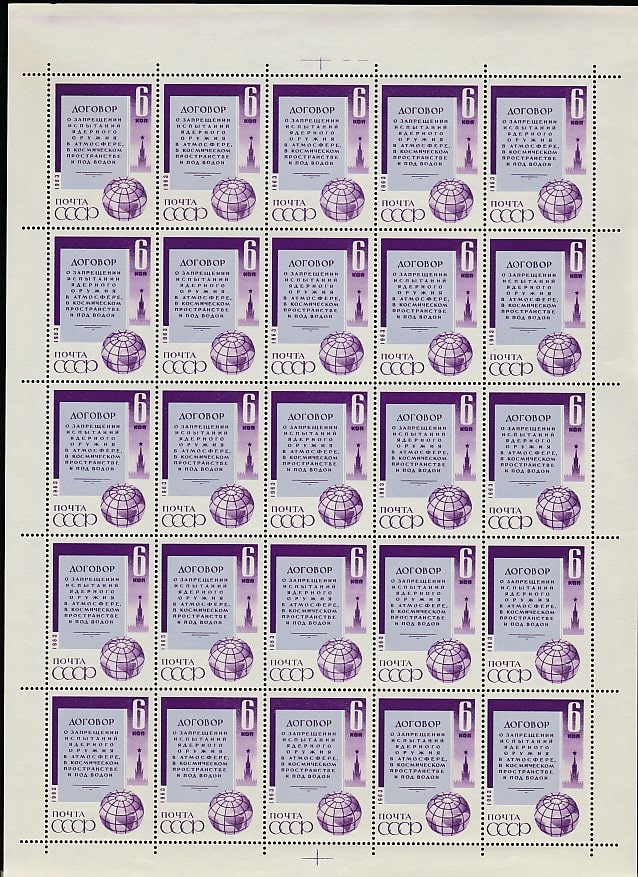 СССР 1963 год. Договор о запрещении испытаний ядерного оружия, лист (2849) (К