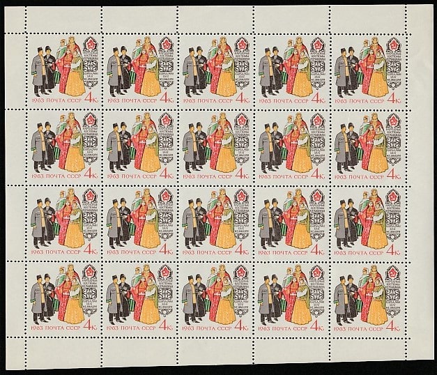 СССР 1963 год. Национальные костюмы народов СССР, 4 листа СССР 1963 год. Национальные костюмы народов СССР, 4 листа СССР 1963 год. Национальные костюмы народов СССР, 4 листа СССР 1963 год. Национальные костюмы народов СССР, 4 листа