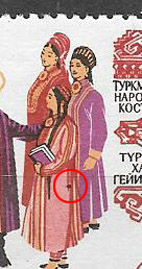 В правой марке пятно на платье девушки с книгами