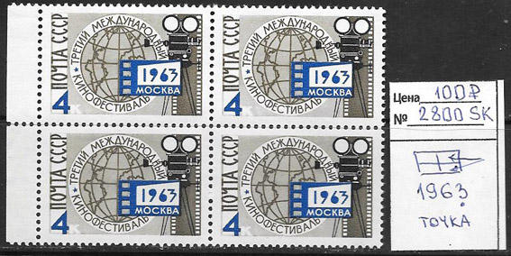 СССР 1963 г, Разновидность. III Международный Кинофестиваль, квартблок марок