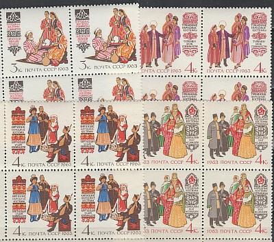СССР 1963 г, Народные Костюмы, 4 квартблока