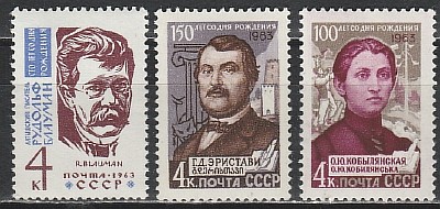 СССР 1963 г, Писатели, Блауман..., серия 3 марки