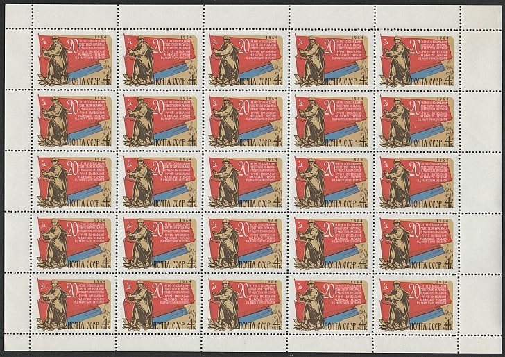 СССР 1964 год. 20 лет освобождению Украины от фашистской оккупации, лист (3024) (К
