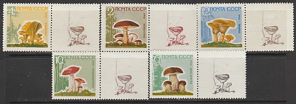 СССР 1964 год. Грибы, 5 марок с правым купоном (рыжики)