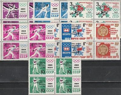 СССР 1964 год, Победы Советских Спортсменов в Инсбруке, 7 квартблоков с надпечаткой.