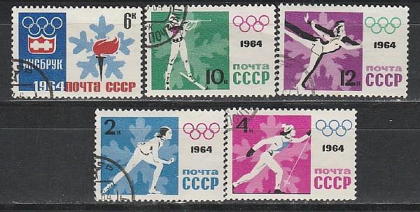 СССР 1964 год, Зимняя Олимпиада, Инсбрук. 5 гашёных марок