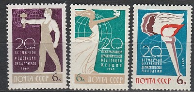СССР 1965, 20 лет Международных Организаций, 3 марки