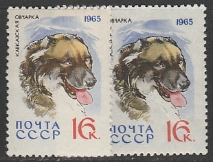СССР 1965 год. Кавказская овчарка. Разновидность - разный оттенок, 2 марки (3082)